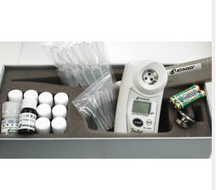 PAL-ACID1測試箱 包含主機(jī)1臺, 反應(yīng)試劑 10瓶 (5ml/瓶), 微量移液器1只, 微量吸頭 10只, 一次性塑料吸管 10 只,校正液 1瓶, 揮發(fā)性樣品適配器1個, AAA電池2節(jié)。