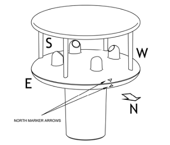 傳感器底座上有可轉(zhuǎn)動(dòng)調(diào)節(jié)的安裝孔,安裝傳感器時(shí),要保證超聲波風(fēng)速風(fēng)向傳感器的指北方向與地理北方保持一致。