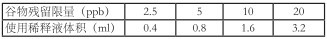 1. 谷物:任取 5g 以上有代表性樣品并粉碎過 20 目篩,準確稱取 2.0g 均勻粉碎試樣于配套離心管中,再準確加入 4ml 純凈水和 4.0ml 乙酸乙酯,將瓶塞蓋緊密封,充分振蕩 5min,4000rpm 離心 1min 得上清液,將上清液用吸管移出 2.0ml 到蒸發(fā)皿或小玻璃杯中,用電吹風吹干上清液,再根據樣品的種類按以下規(guī)定的稀釋液量,用鋁箔袋內配套吸管反復沖洗,徹底溶解杯底所有的固體,此溶解液為樣品提取液即檢測液??紤]不同樣品對黃曲霉毒素 B1 的*高含量要求,請參考下表進行用稀釋液溶解杯底固體: