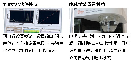 標準配置:主機、微處理器控制的攪拌器、玻璃石墨電極、Ag/AgCl電極、鉑電極、T-METAL軟件
